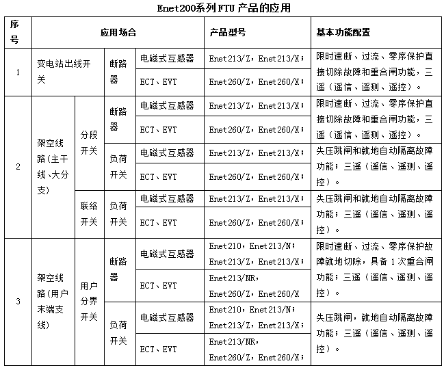 Enet200系列FTU和斷路器配合,可以應用于變電站出線開關、分段/聯絡斷路器、用戶分界斷路器,具備相間故障檢測及跳閘功能,單相接地故障檢測及跳閘功能。