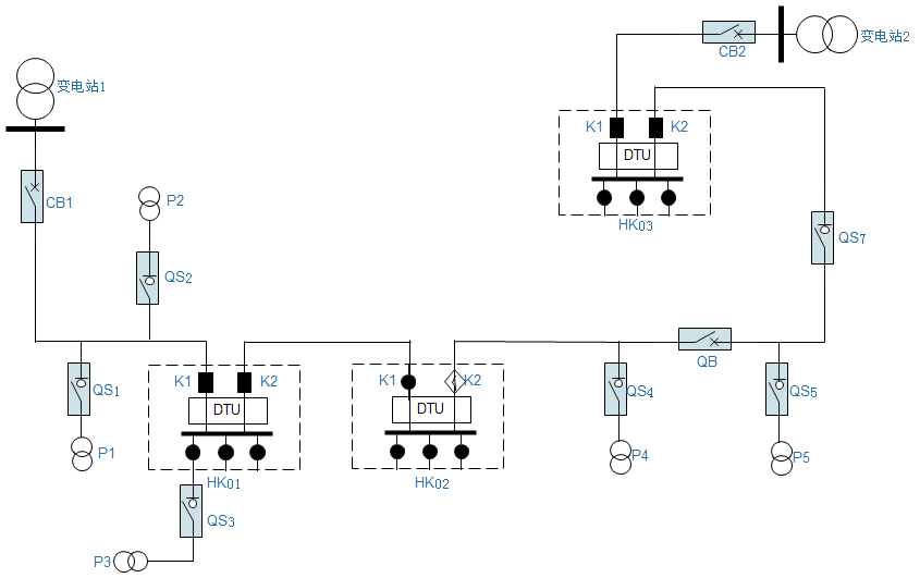 自適應綜合型饋線自動化是通過無壓分閘、來電延時合閘方式、結合短路/接地故障檢測技術與故障路徑優先處理控制策略,配合變電站出線開關二次合閘,實現多分支多聯絡配電網架的故障定位與隔離自適應,一次合閘隔離故障區間,二次合閘恢復非故障段供電。
