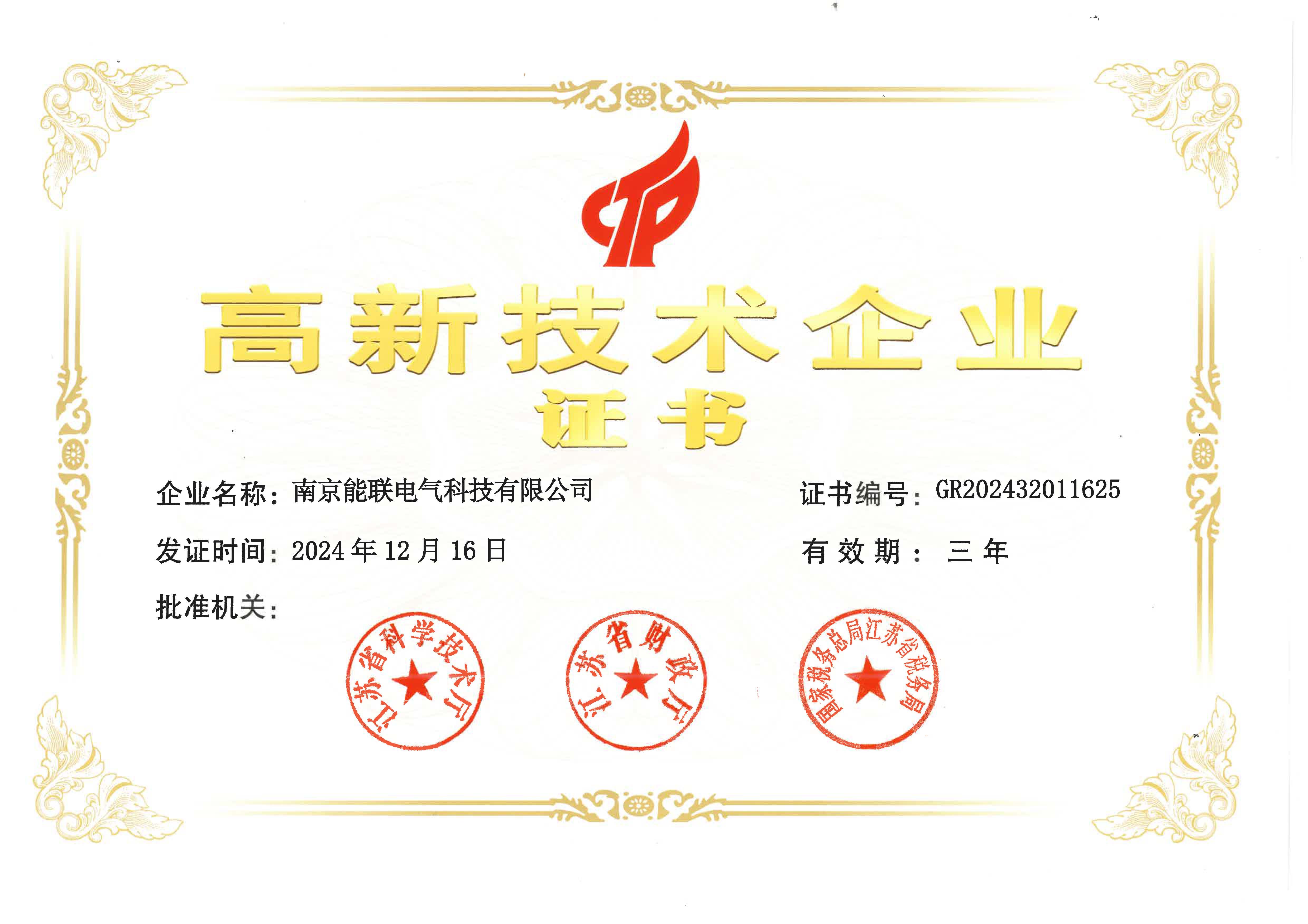 高新技術企業(yè)證書